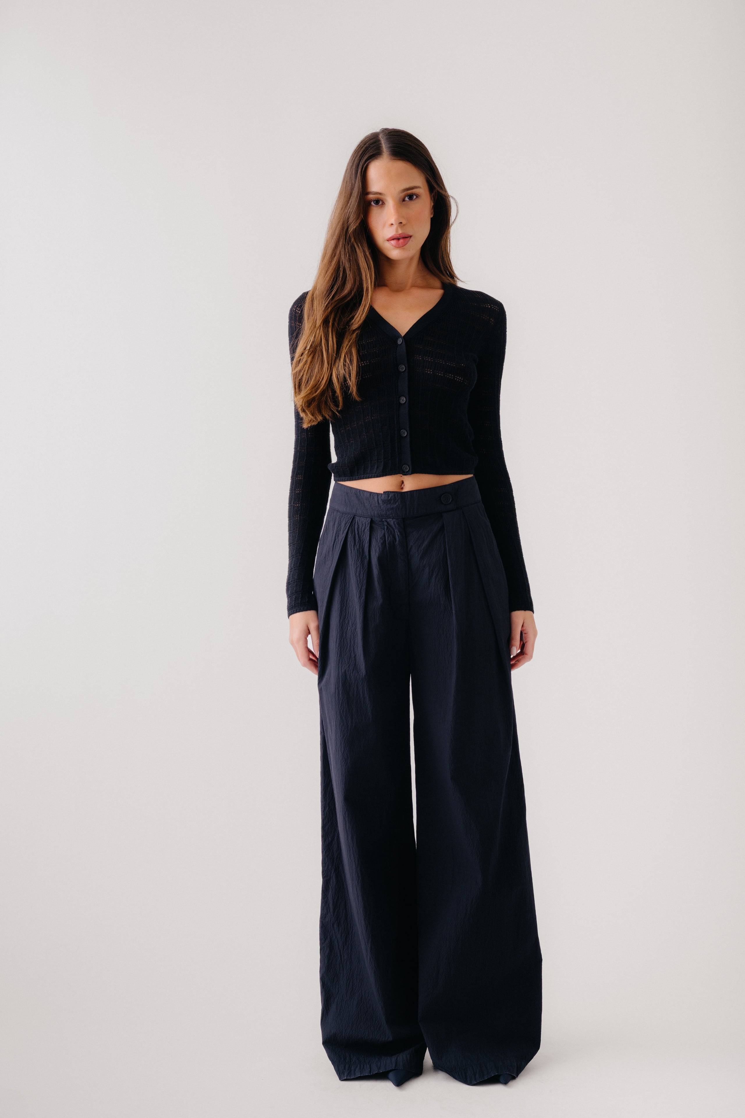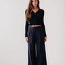 High-rise silk trousers with double pleats and a relaxed wide leg.