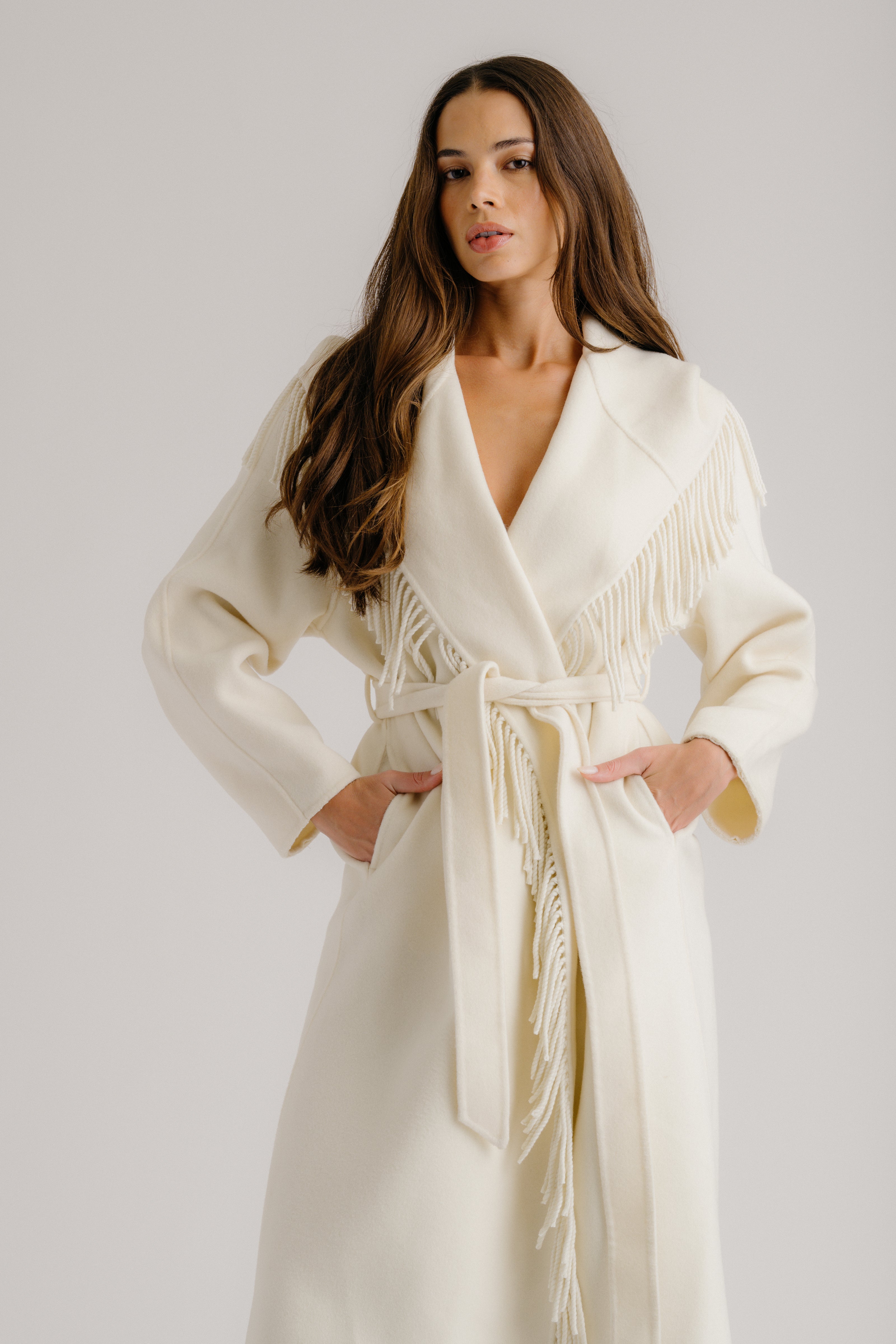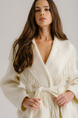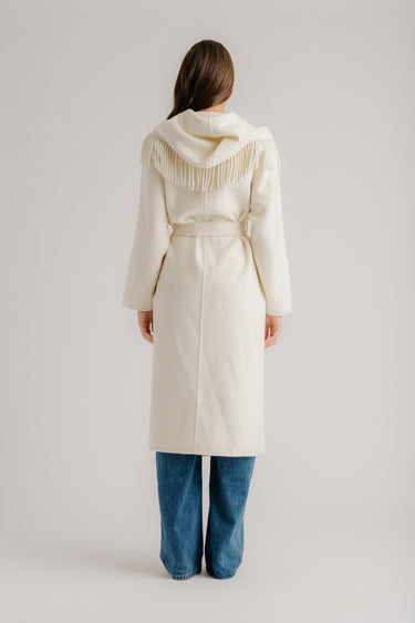 CHARLI HOODED COAT W/ FRINGE | GARDENIA