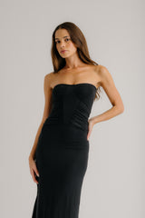 ELLE DRAPED STRAPLESS DRESS | BLACK