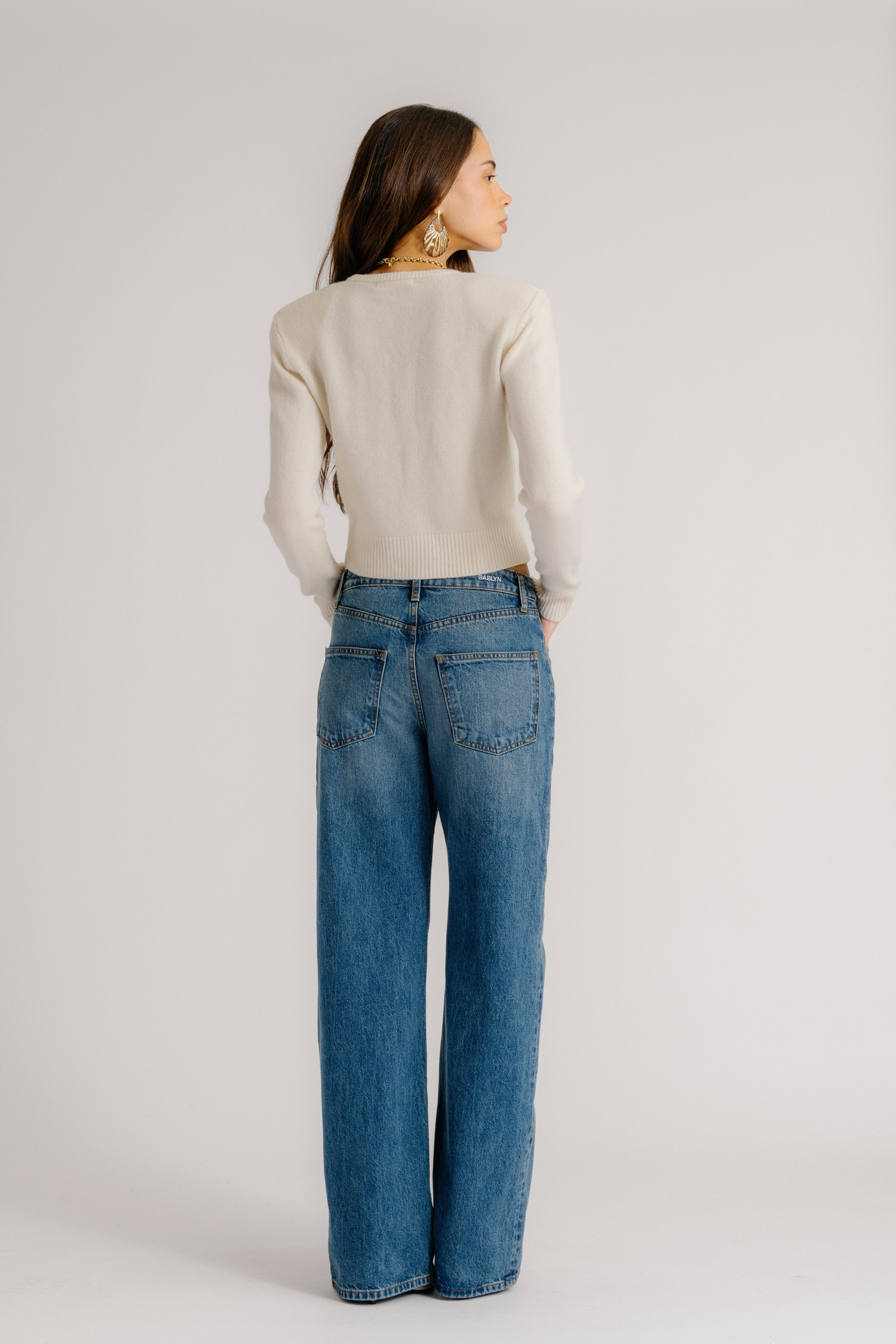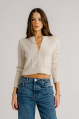 EMILIA SHOULDER PAD CASHMERE CARDIGAN | GARDENIA