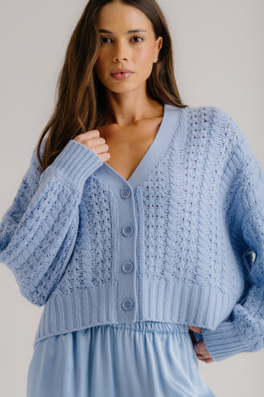 HAZEL SLOUCHY CABLE CASHMERE CARDIGAN | AZUREOUS