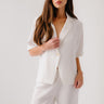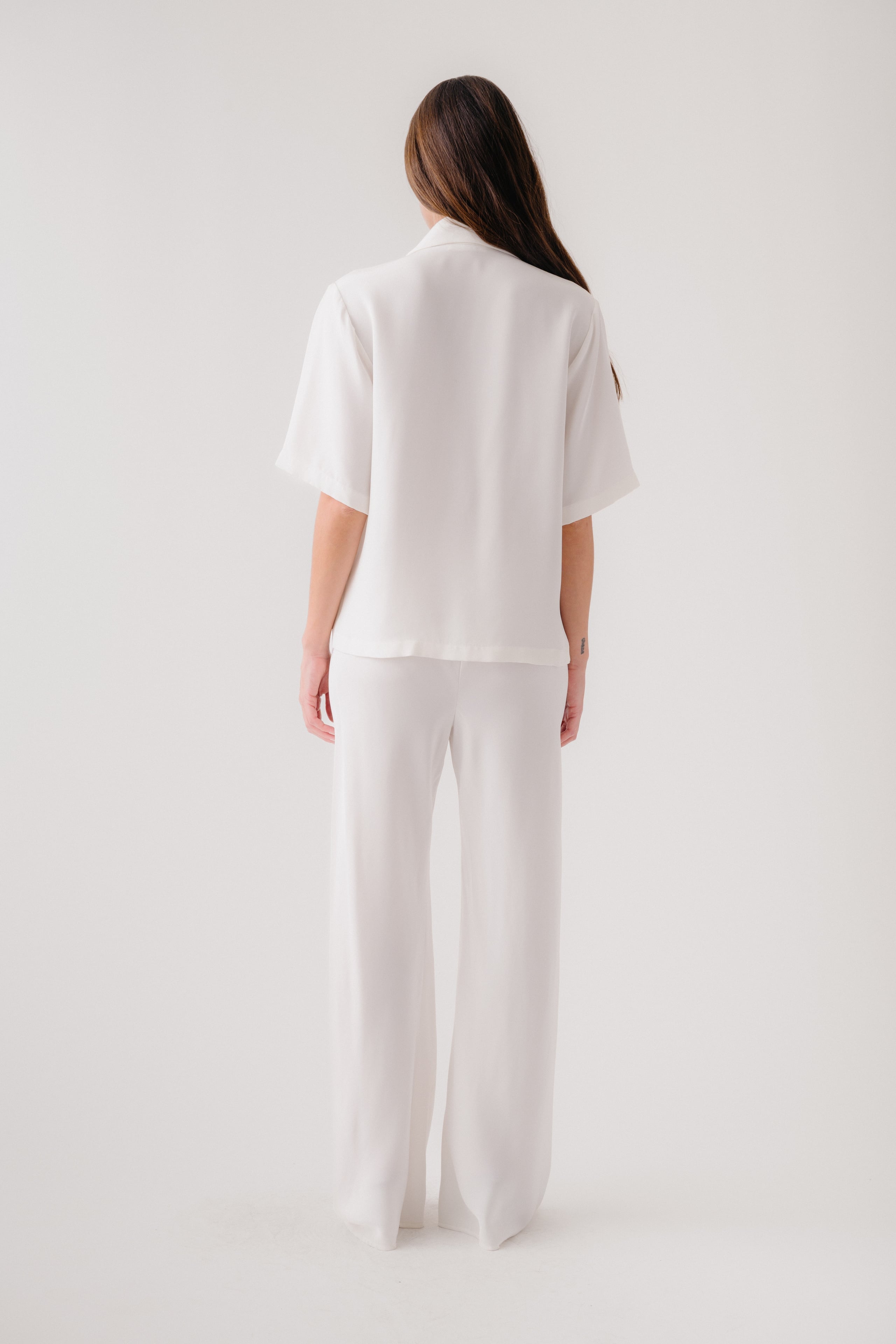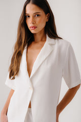 Short-sleeve collared top in heavy silk.