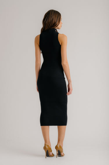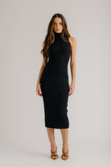 LAUREN MOCK NECK FITTED DRESS | BLACK