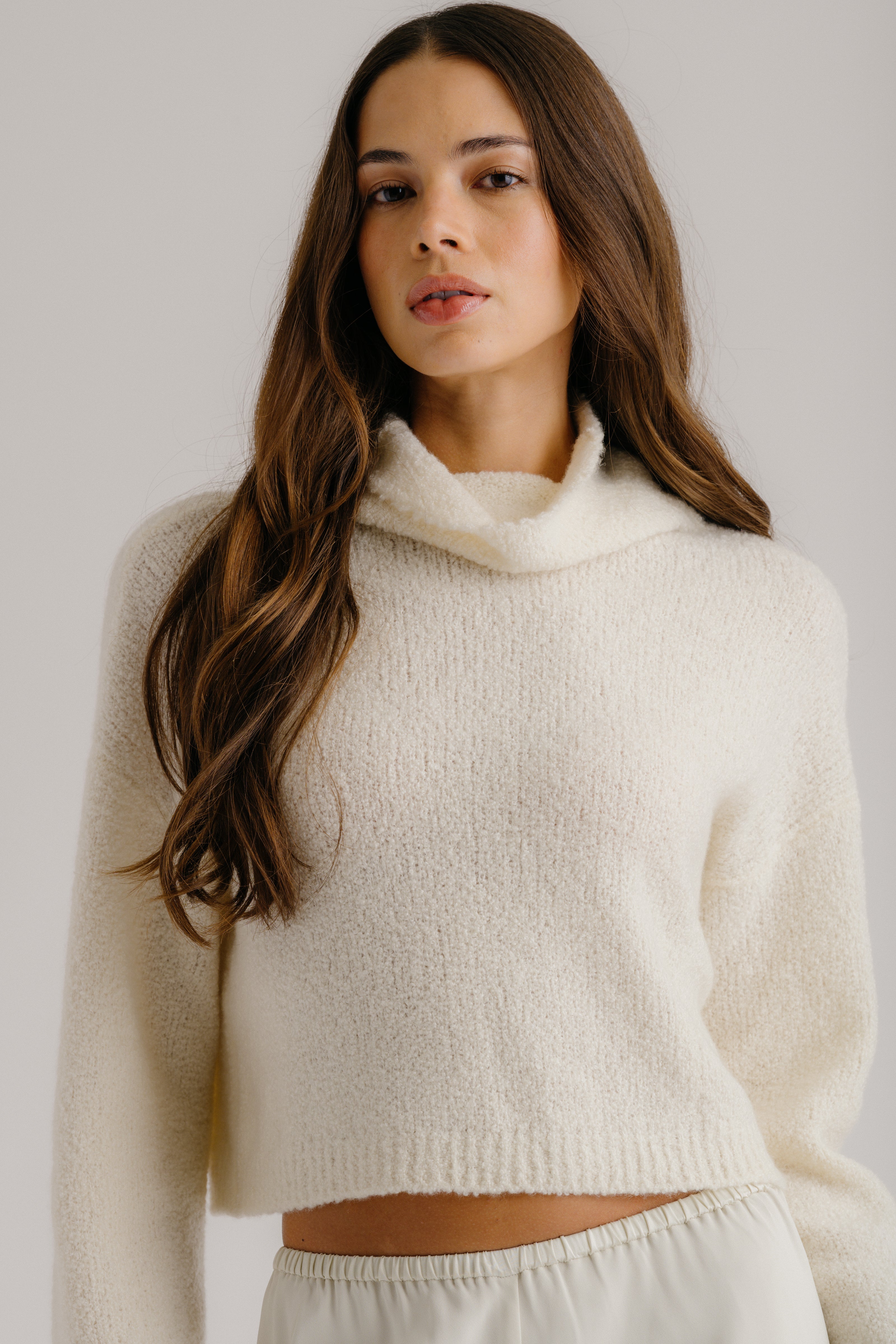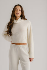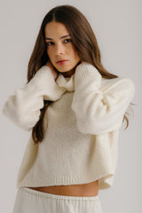 LOLA SLOUCHY CROPPED BOUCLE MOCK NECK | GARDENIA