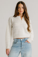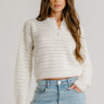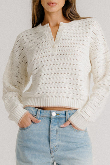 MAEVE SHRUNKEN HENLEY W/ CONTRAST TIPPING | GARDENIA/PINK SAND