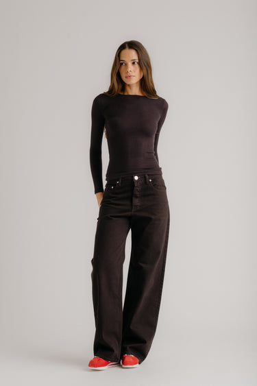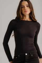 Fitted long-sleeve crewneck tee in ribbed knit.