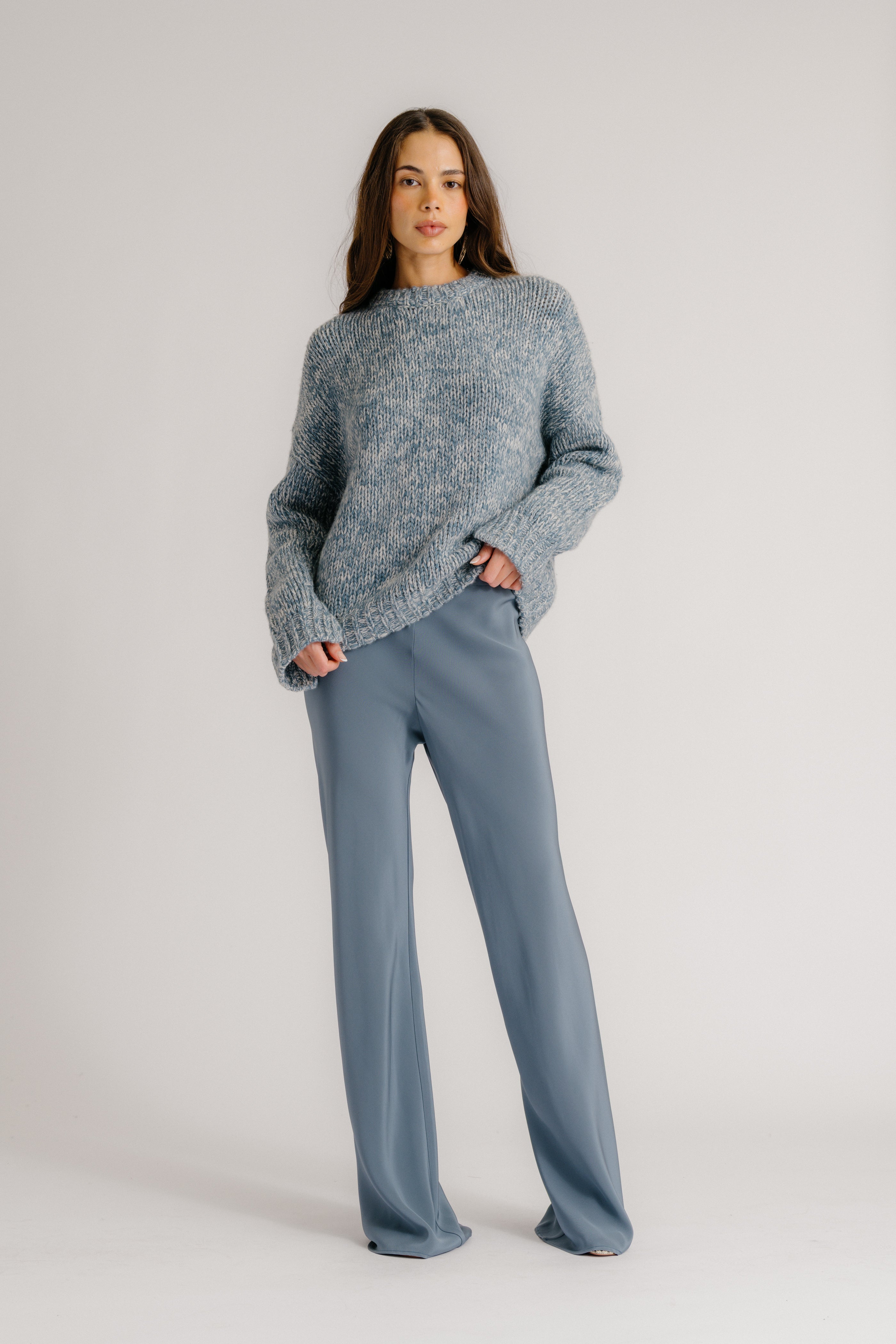 RIO FLARED BIAS CUT PANT | SMOKY BLUE
