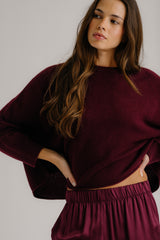 Raglan crewneck sweater in 100% cashmere jersey stitch with saddle seam detailing.