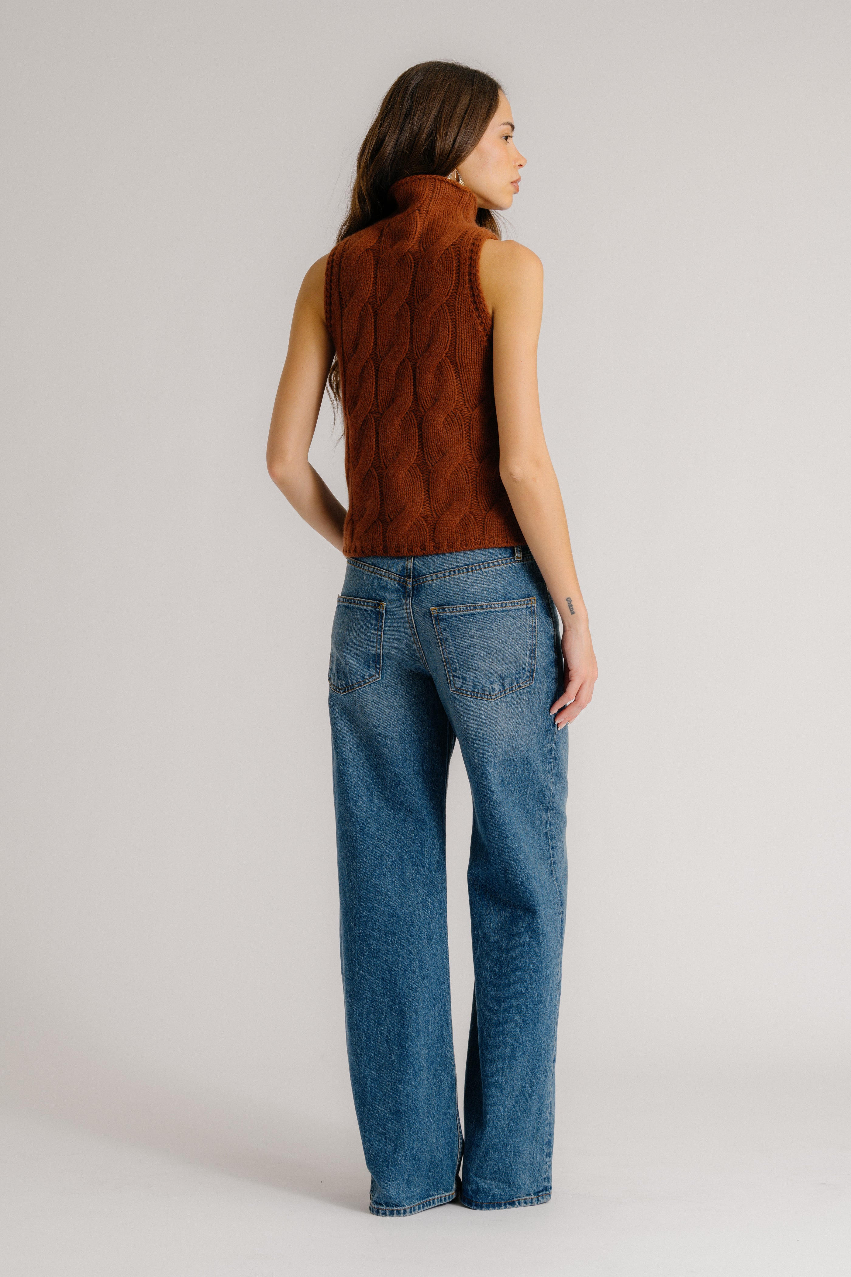 SALVIA SLEEVELESS CASHMERE CABLE TURTLENECK | MAHOGANY