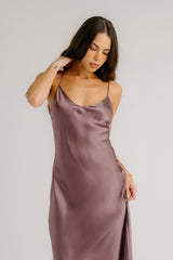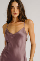 TAYLOR V-NECK BIAS CUT SILK DRESS W/ LACE | DUSTY VIOLET