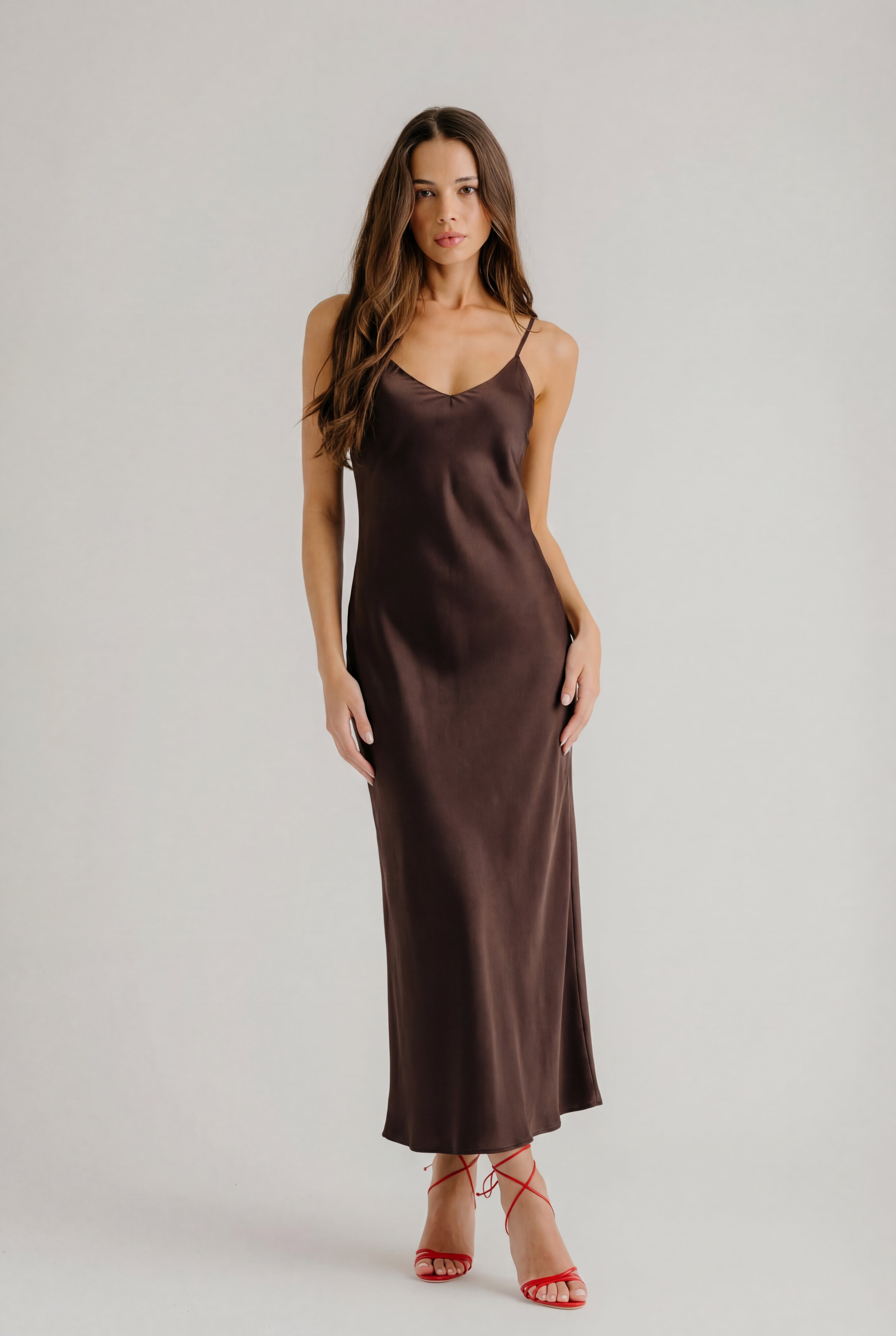 TAYLOR V-NECK BIAS CUT SILK DRESS | OAK TREE
